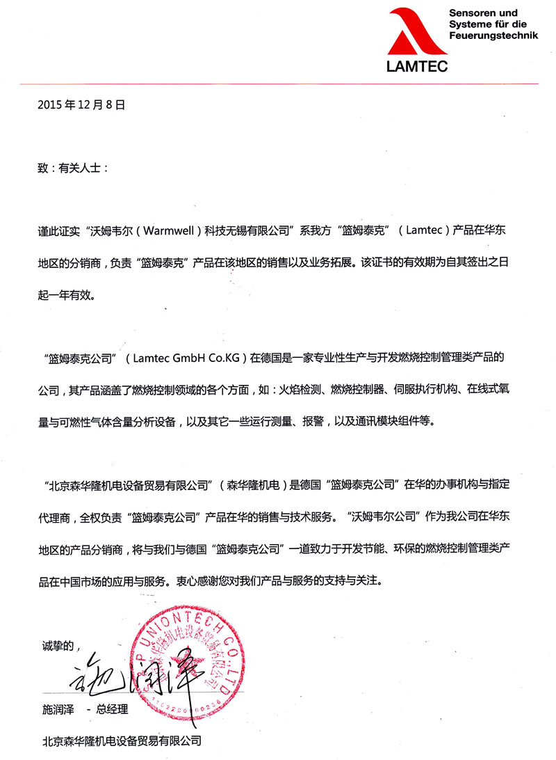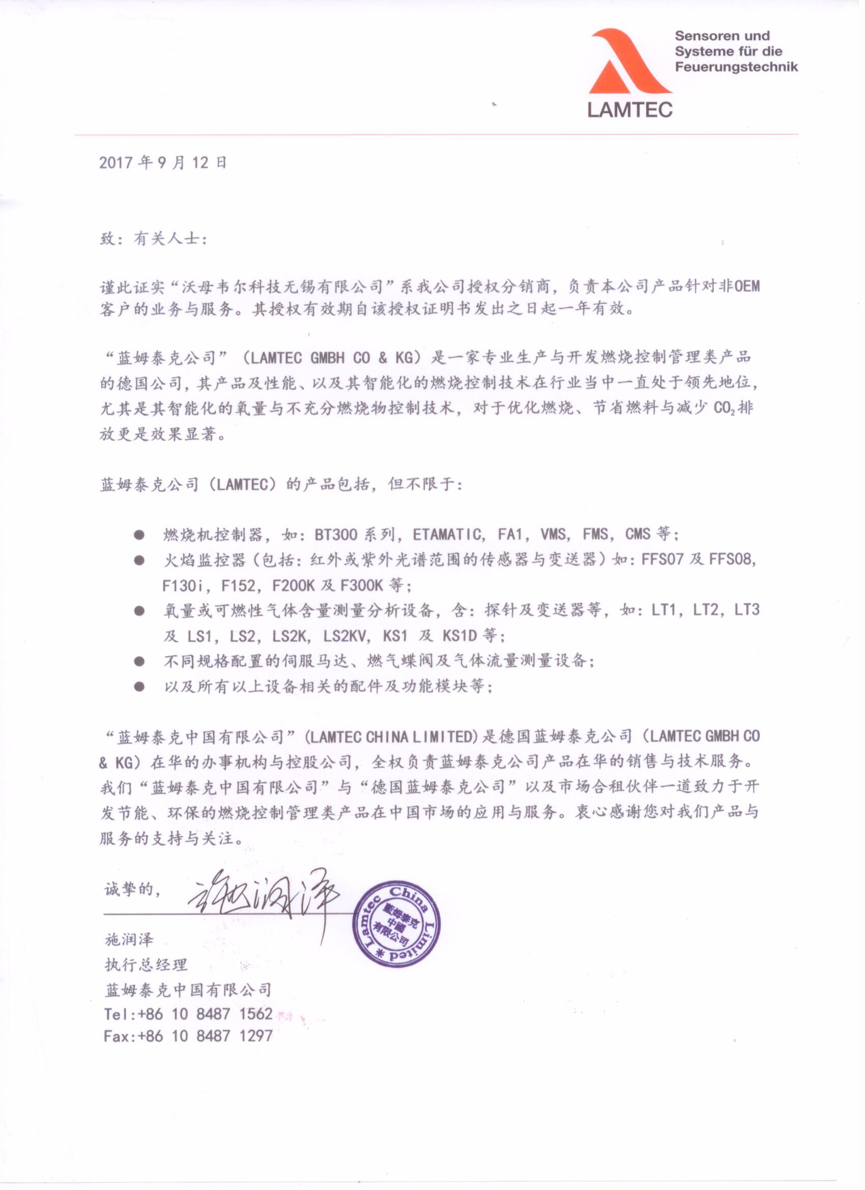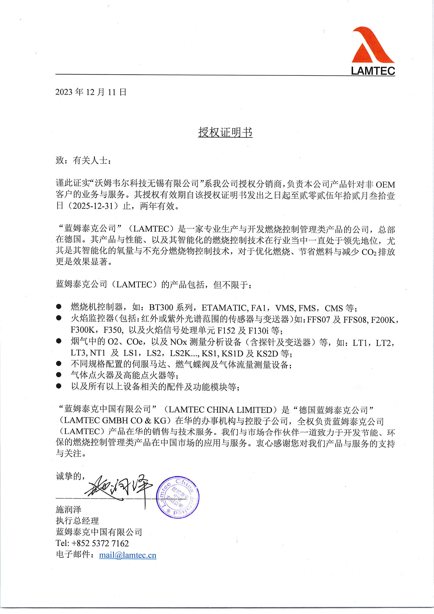 德國Lamtec藍(lán)姆泰克授權(quán)證書2022-2023